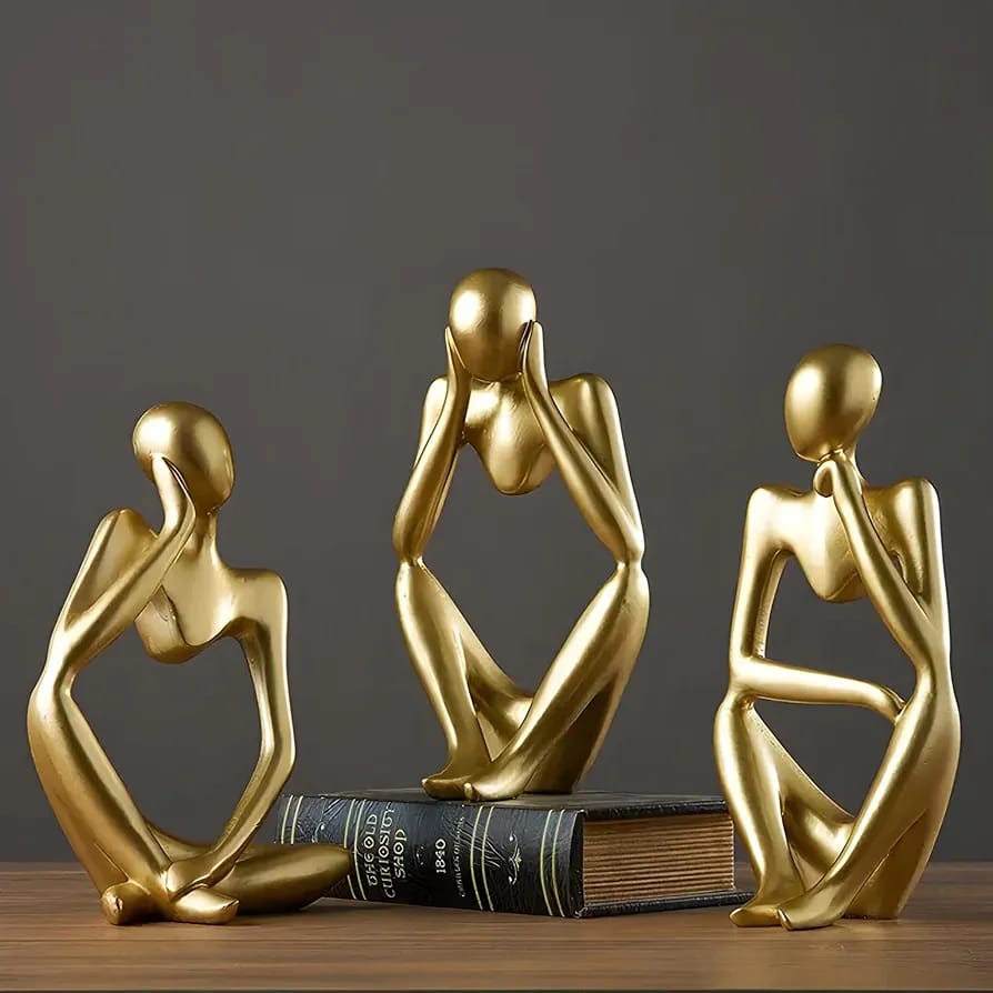 ✔ Set of 3 Unique Thinker Men Sculptures – Modern Abstract Design