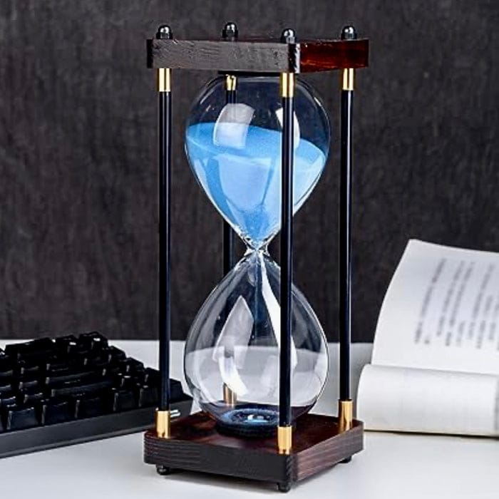 Elevate your decor and time management with the 9-Inch Sand Glass Hourglass Timer, an elegant and functional accessory for homes, offices, cafes, or study spaces. Available in multiple timing options — 10, 15, 20, 30, or 60 minutes — this hourglass combines timeless beauty with practical use.
